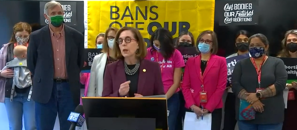 俄勒冈州州长布朗当天也出现在集会现场,她发誓要维护俄勒冈州的打胎权。