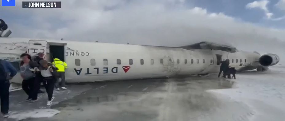 2月17日星期一,一架达美航空公司航班在多伦多皮尔逊国际机场降落时翻覆,造成至少18人受伤。