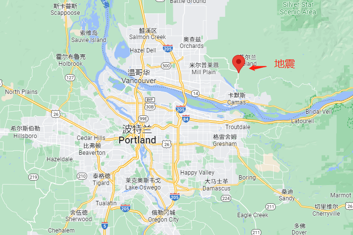 地震发生在晚上 7 点前,靠近小温哥华以北的华盛顿州Fern Prairie附近。