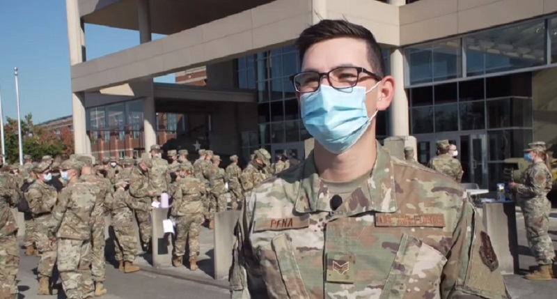 第 116 空中控制中队的监视技术员罗伯特·佩纳 (Robert Pena) 对媒体说,星期五刚从俄勒冈州的“野火战场”中回到家,就被命令进行新冠救援。