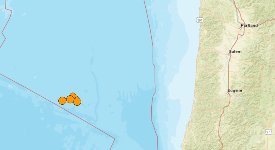 4月29日星期四凌晨,俄勒冈州海岸不到200英里的地方发生多场地震。