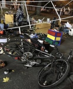 11月28日星期六凌晨,在美国波特兰市中心的联邦法院大楼对面建立的“户外厨房”被十多个人武装抢劫、摧毁!