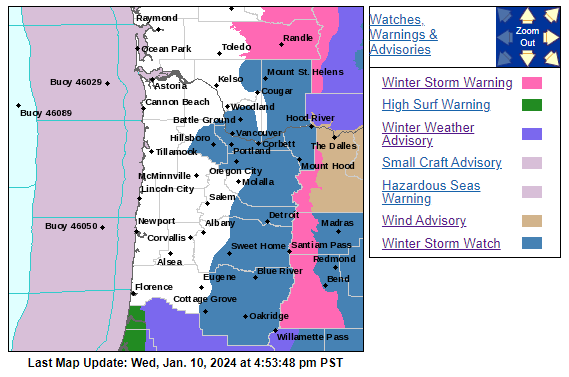 1月10日星期三,美国国家气象局对包括小温哥华在内的大波特兰地区发布了冬季风暴警报!