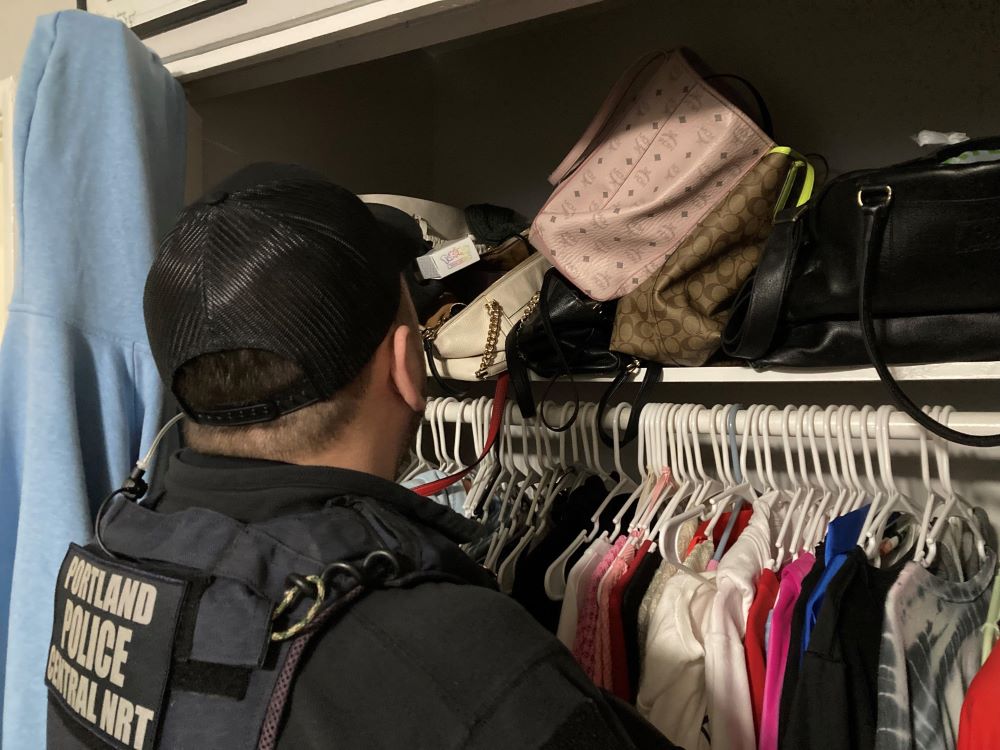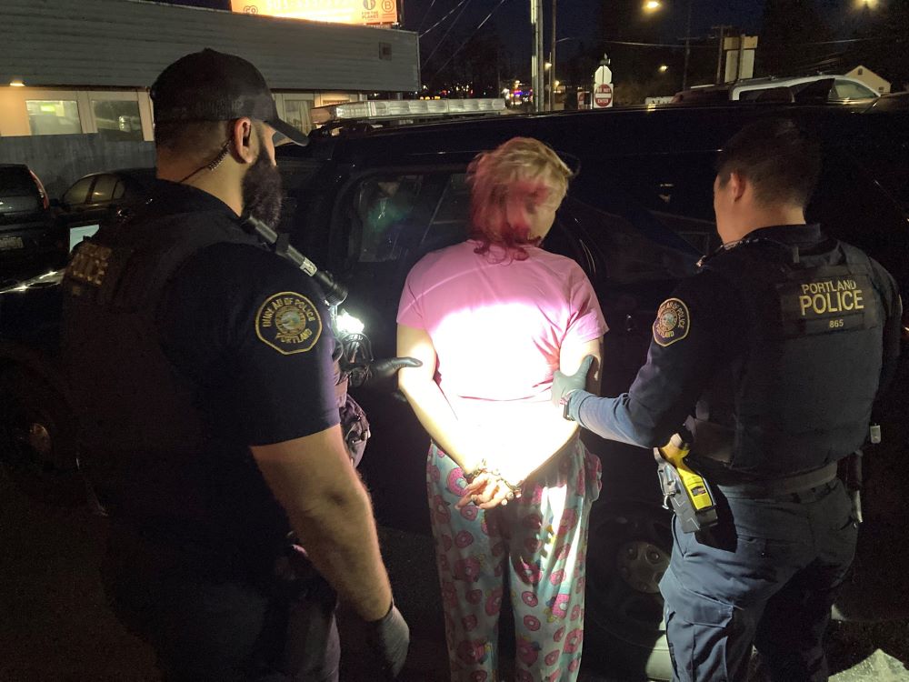 4月1日星期一愚人节,俄勒冈州波特兰一名连环女大盗深更半夜在家里被长满胡子的警察叔叔逮捕,逮捕时还穿着睡裤。这是真的。