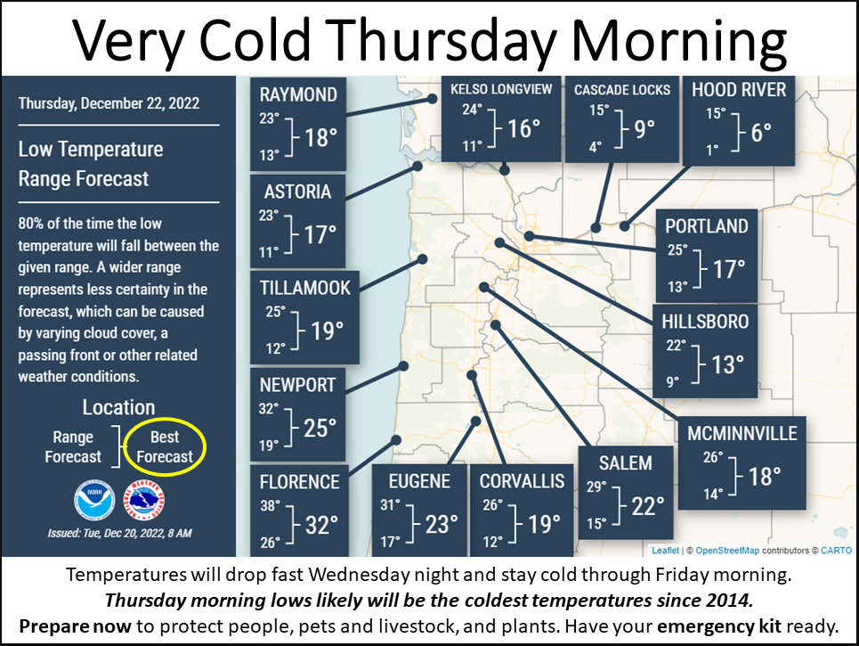 摩特诺玛县领导人警告说,从星期三晚上开始的危险低温将是波特兰都市区二十年来的最低记录。
