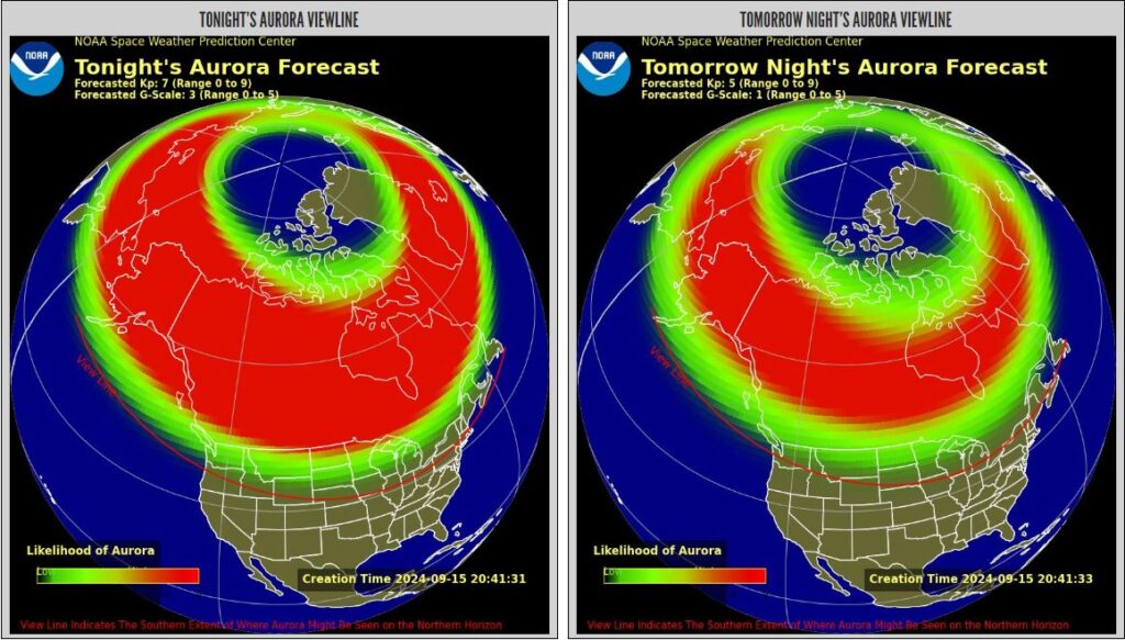 各位观众,太阳正处于第25个太阳活跃周期,周末再次发出强烈耀斑!9月15日星期日晚上至9月16日星期一凌晨,美国部分地区将有机会观赏到北极光!