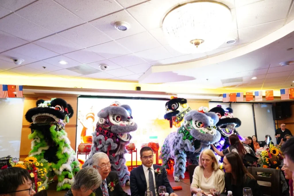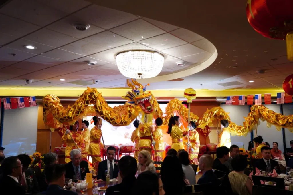 9月13日星期六傍晚,美国俄勒冈州波特兰华人侨界在鱼乐轩大酒楼盛大举办“迎国庆贺中秋”文艺晚会!舞龙舞狮腾跃开场,金鼓齐鸣,现场洋溢着节日的喜庆与浓浓乡情,大批侨胞和各界友人共襄盛举。