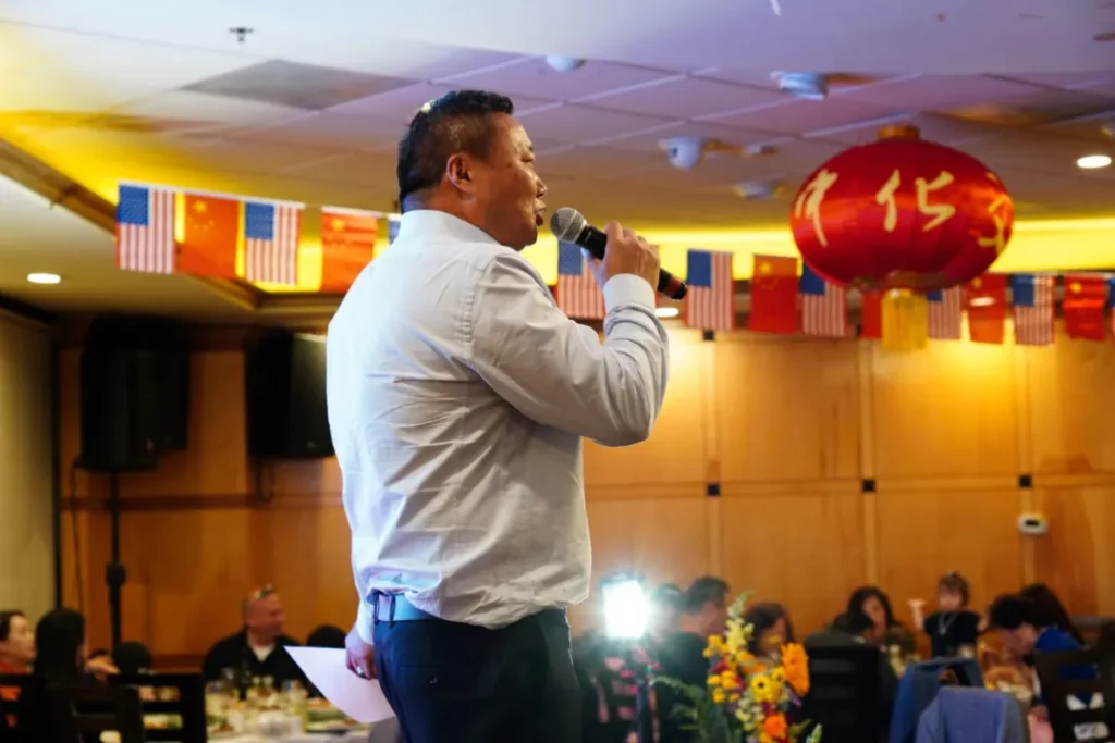 在宴会过程中,萃胜工商会会长靖东升先生登台致辞,代表晚会主办方向所有为本次国庆暨中秋庆典付出心力的人士表达衷心感谢。他特别向慷慨解囊的热心赞助者致以敬意,也感谢筹委会成员、台前幕后工作人员及全体演出人员的辛勤付出,使晚会得以圆满成功。靖东升表示,正是因为大家无私的支持与共同努力,才让这场盛会不仅展现了华人社区的凝聚力与向心力,更让中华文化的魅力在波特兰绽放光彩。