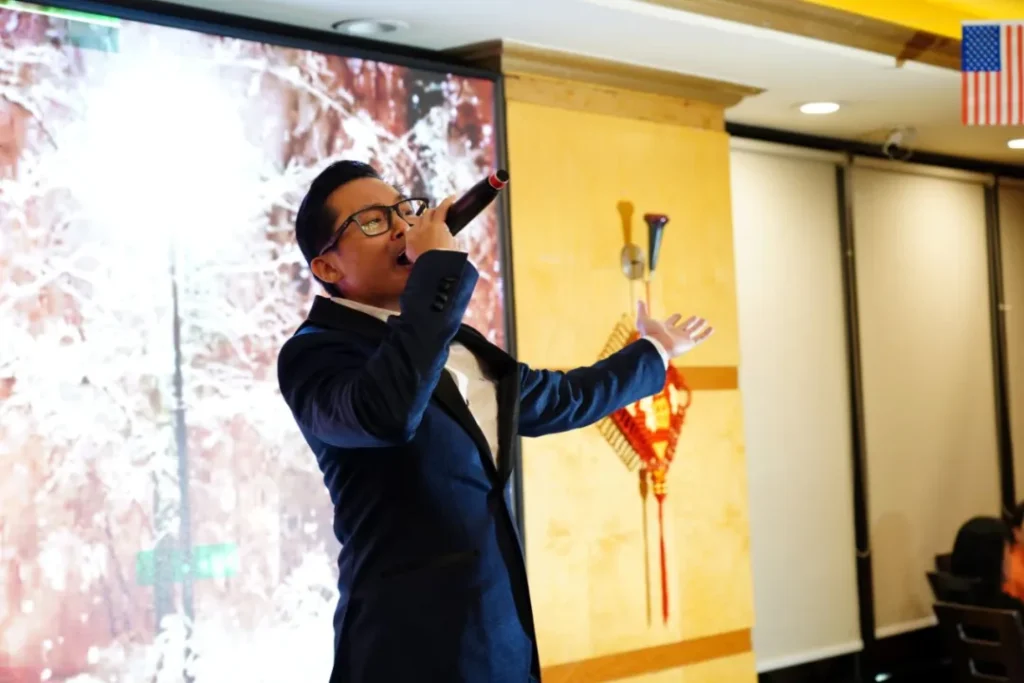 晚会执行副主席张宇雄代表主办方向所有到场的嘉宾致以诚挚感谢。他表示,正是因为社会各界的热心支持与踊跃参与,才让这场庆典如此圆满、充满温情。张宇雄深情祝愿伟大祖国繁荣昌盛、国运昌隆,也期盼旅居俄勒冈的华人继续携手努力,在建设多元和谐社区的同时传承中华文化,让更多人了解并喜爱中国。他最后向所有来宾送上中秋佳节的美好祝福,愿大家阖家幸福、花好月圆。