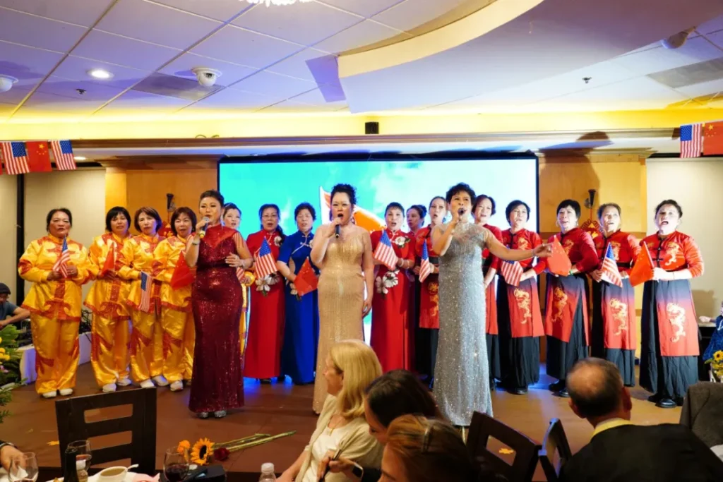 陈曼娜、朱艳仪、Nicole携手波特兰妇联会联唱《花心》《我的祖国》,柔美与豪迈交织,唱出海外游子对祖国的无限眷恋与真挚祝福。歌声回荡,祝愿伟大祖国繁荣昌盛、国运恒昌。