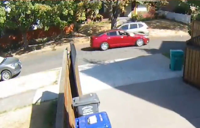 突然之间,一辆红色的汽车在门口的公路疾驰而过,并在停车标志前刹车!一个男人从红色汽车下来,对着后面的白色汽车大吼大叫。