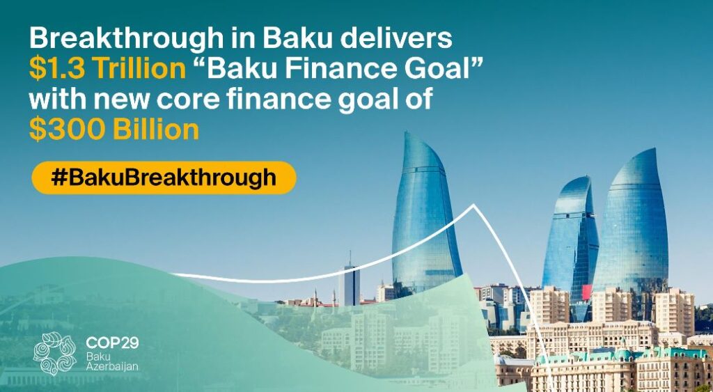这项协议是在阿塞拜疆首都举行的为期两周的会议加时阶段达成的,旨在为全球遏制变暖的国际努力提供动力。今年预计将成为有记录以来最热的一年。