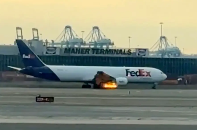 3月1日早上,一架联邦快递飞机从纽瓦克机场起飞后不久引擎突然起火,迫使飞机紧急降落,旁观者惊恐不已。