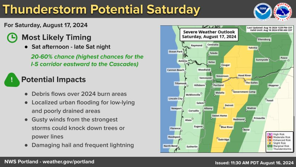 美国国家气象局警报,8月17日星期六,恶劣天气将威胁俄勒冈州西部和华盛顿州西南部的大部分地区!