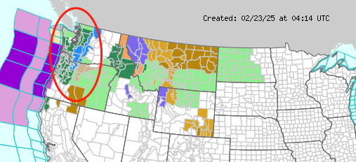 - 喀斯喀特山脉高海拔地区可能因降雨和积雪融化导致山体滑坡风险增加
