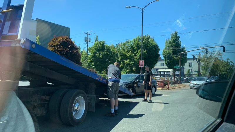 目击者说,82街转入富康超市的十字路口附近发生了一起车辆碰撞事故,造成汽车左前角严重损坏。这可能与周围施工警戒线过多、布局混乱有关,导致交通可用空间变得异常狭窄,容易发生车辆之间的碰撞。