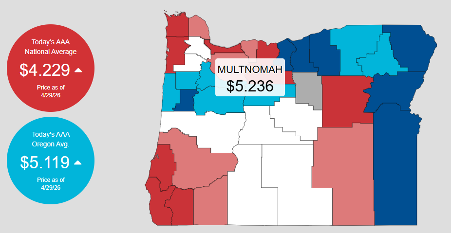 根据AAA数据,全美普通汽油平均价格升至每加仑4.23美元左右;而俄勒冈州更贵,平均油价约为每加仑5.12美元,波特兰地区汽油均价更是达到每加仑5.236美元,明显高于全美平均水平!