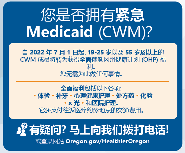2022年7月1日起,俄勒冈州《HB 3352》正式生效,不论移民身份如何,更多成年人将有资格获得州政府全免费医疗保险(OHP)!