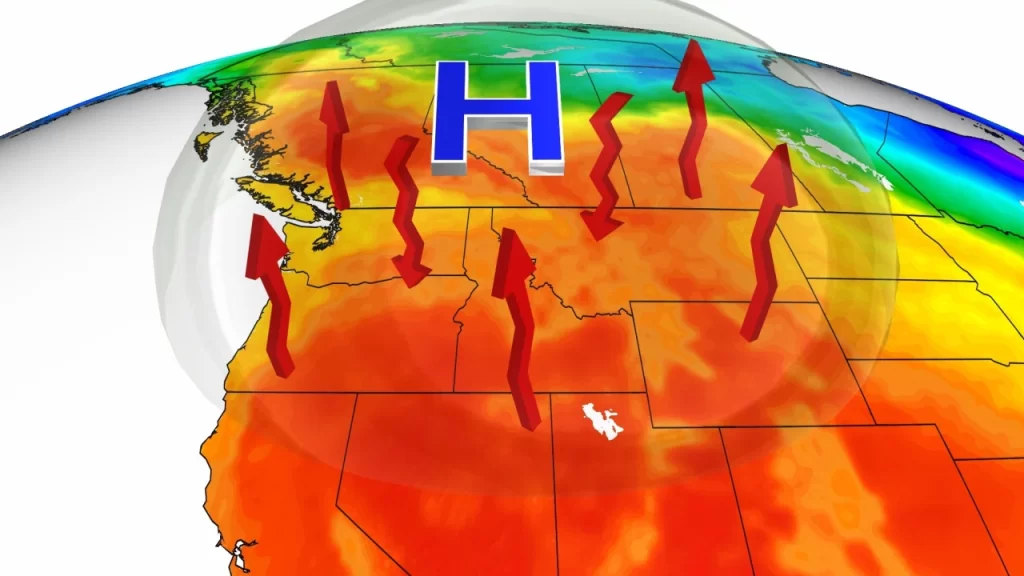 美国国家气象局预报员表示,一个异常的高压区将在美国西部和加拿大上空形成一个“热穹顶” ,就像有一个锅盖盖在大气层上。