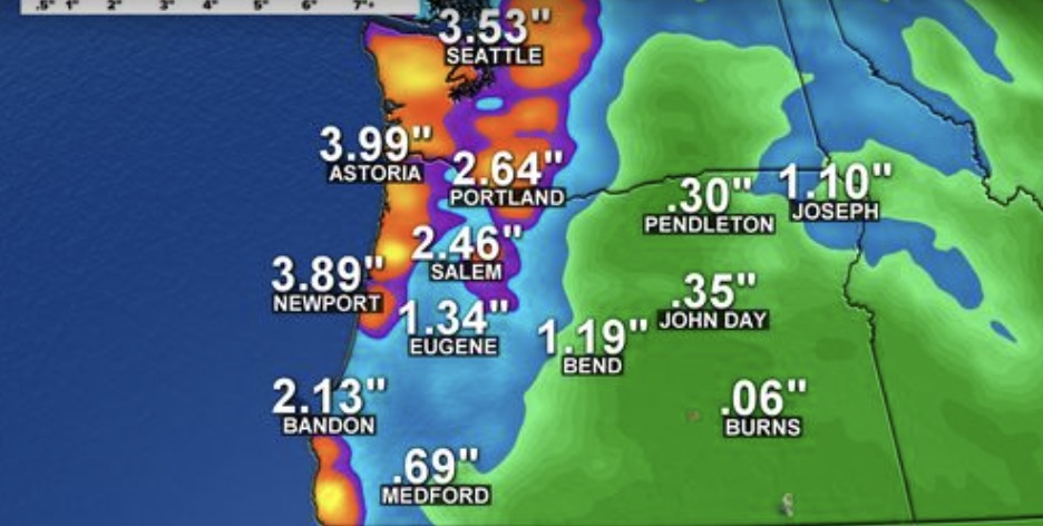 降雨预测显示,山谷中有2.5英寸,海岸有2至4英寸,海岸线有4至6英寸,在偏远地区最多可达8英寸。降雪高度将在6000英尺上。