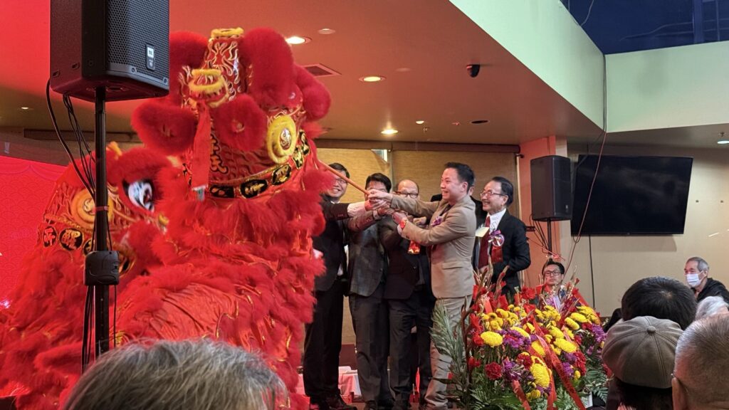 (波特兰协胜公会主席周惠敬与众领导进行“采青”仪式)