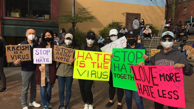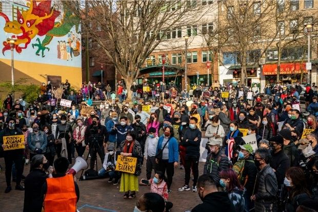 美国大西雅图地区连日举行聚集,抗议近来针对亚裔的仇恨袭击事件。