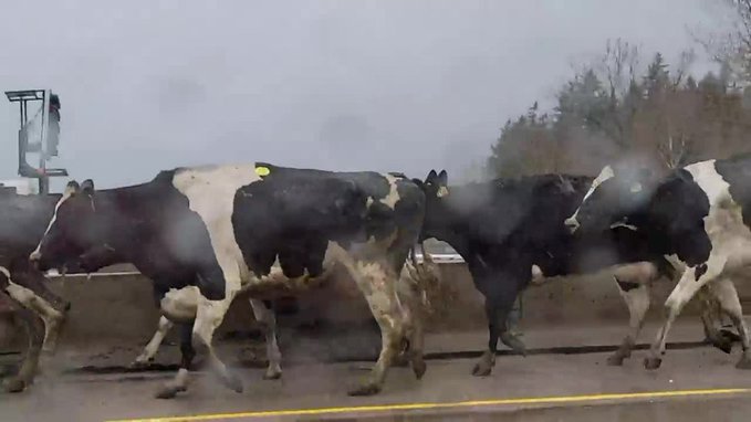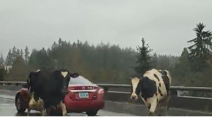 俄勒冈州警方说,大约31头奶牛在翻车后走出公路。