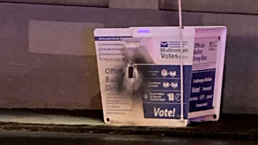 10月28日星期一,波特兰警察局报告,凌晨3点半,波特兰东南区的一个投票箱被不法分子点烧。