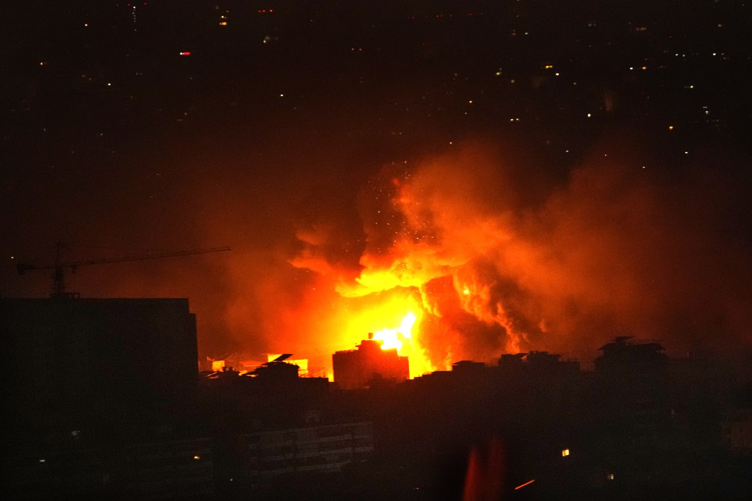 巨大的火球照亮了黑暗的天际线,轰鸣声回荡在贝鲁特。