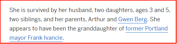 oregonlive.com报道说,她可能是已故前波特兰市长Frank Ivancie的孙女。