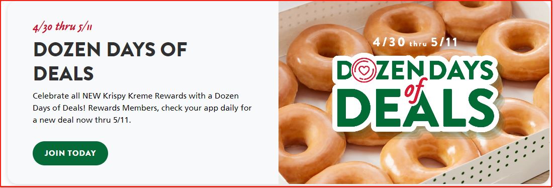 4月30日至5月11日,Krispy Kreme向所有会员免费赠送Original Glazed® dozen(原味甜甜圈一打)!