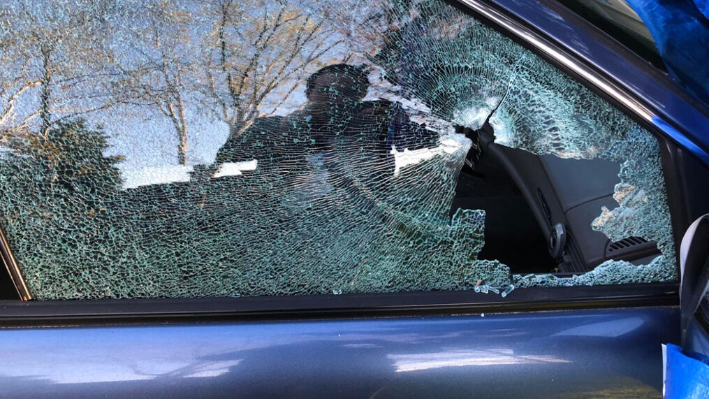 James Guyton的车多处被子弹打击,玻璃洒了车内到处都是。座椅也被射穿。