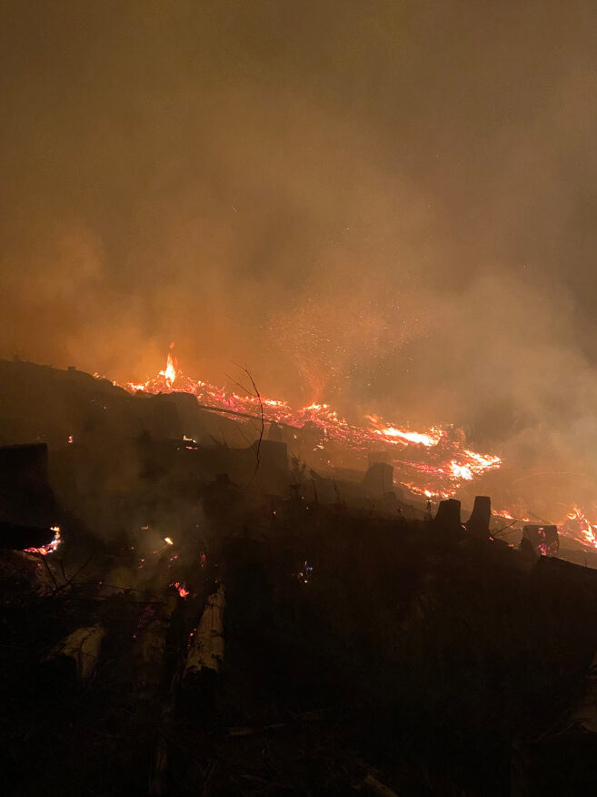 截至星期二晚上,21 所房屋已被摧毁,总共有 54 个其他建筑也被摧毁,另有数百所房屋处于 3 级立即走撤离令之下。