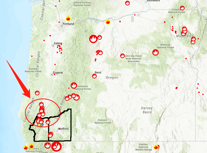8月27日星期六,美国俄勒冈州南部的一场野火在一夜之间翻了两番,迫使公众撤离!俄勒冈州州长布朗女士宣布紧急状态,将扑火工作的指控大权交给消防部长!