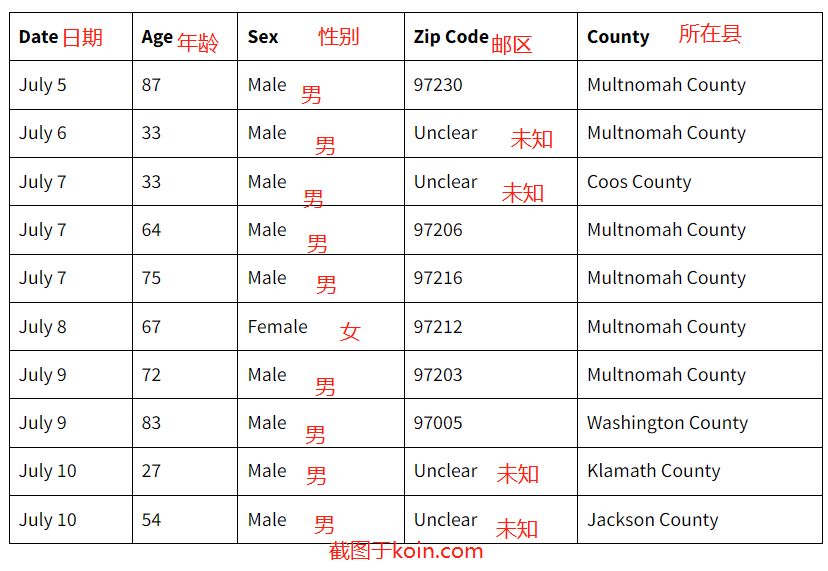 7月10日星期三下午,俄勒冈州法医办公室报道,在本轮热浪中,至少10人疑似死于高温。