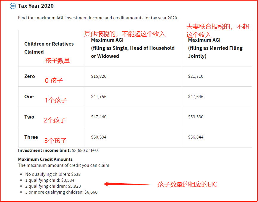 - 如果年收入超过条件,将没有EITC税收抵免。将不能在本轮发钱中受益。