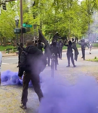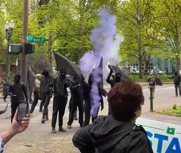 中午时分,在 SW 3rd 和 Main 附近,民主党的支持者Antifa极端组织全身黑扛着黑旗突然出现,向斯坦·普利亚姆(Stan Pulliam)的竞选支持者投掷了“烟雾弹等物品”。