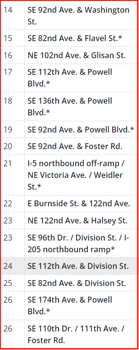 不清楚其他“路口安全摄像头”会安装在哪里,目前被认为是危险十字路口的有: