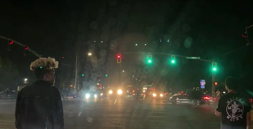 晚上11点30分,就在本条新闻即将发出时,一位小姐姐报料,在122大道夹Airport Way十字路口聚集了一群人,玩漂移斗车,险象环生。