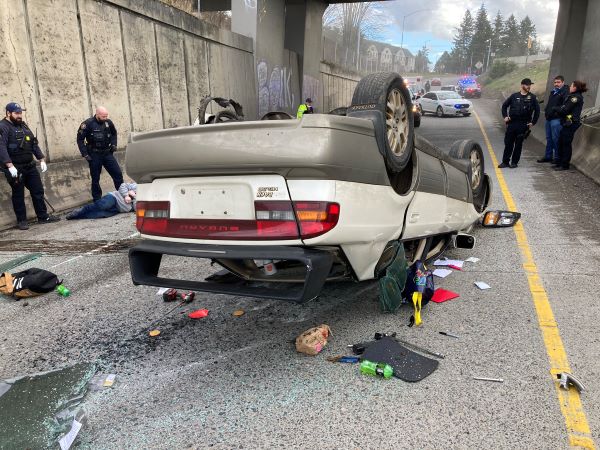 盗车贼超速行驶,试图躲避追捕,在205号公路夹Sandy街险些撞上多辆汽车后自己翻车。车里的两名盗车贼受伤,可惜没有死,被送往医院。