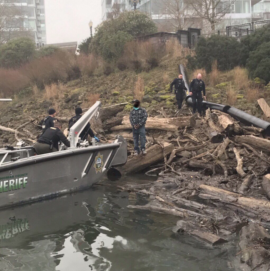2月19日星期六早上,美国波特兰河边南部发生袭击事件,一名黑人男子被捕。