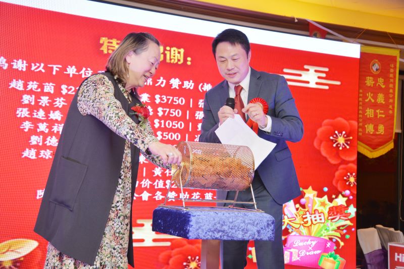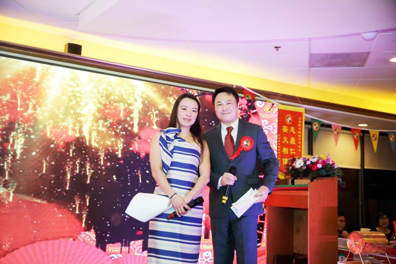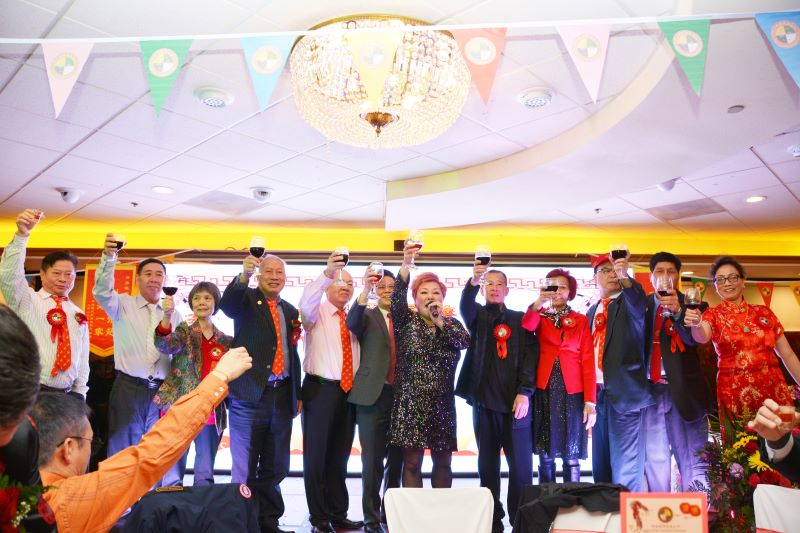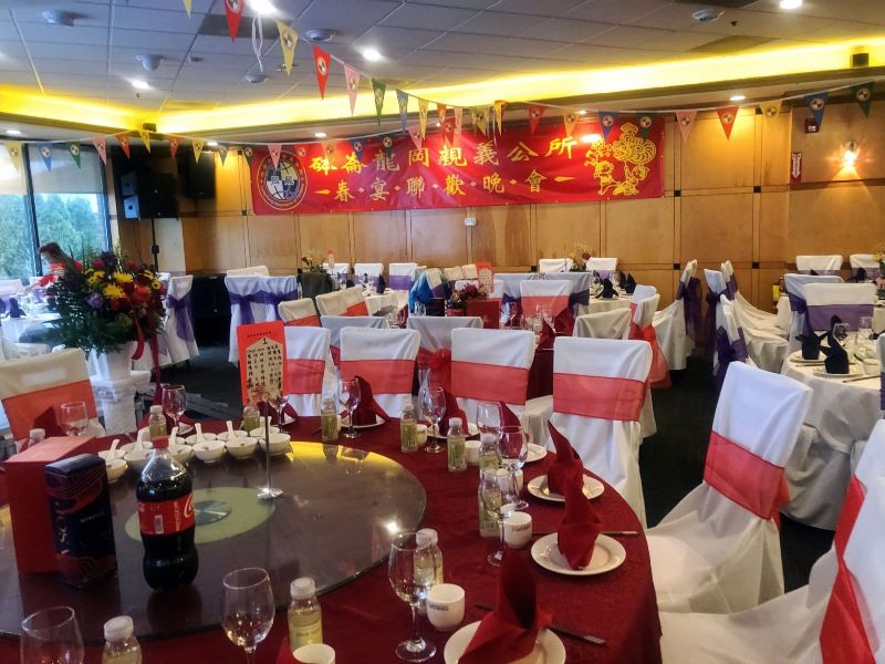 2月26日晚六點,天公造美當晚沒下雪。砵崙龍岡親義公所廣邀300多位賓客歡聚一堂,於東南區的魚樂軒海鮮酒樓舉辦兔年春節大聯歡,場面佈置非常壯觀。