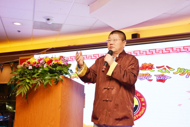 中國駐舊金山總領館領僑處副主任王崑致辭,他代表總領事向來賓們拜年和致以新春的問候。他代表總領館肯定並感謝砵崙龍岡親義公所這些年為維護鄉親權益,弘揚中國文化,增進中美友好方面做出的積極貢獻。他寄望砵崙龍岡親義公所能繼續和各僑團緊密協作,積極參與和開創更加精彩的芳華時代,為促進僑社和諧、增進中美友好再接再厲。並祝愿該公所會務昌隆,蒸蒸日上!來賓們新春愉快,闔家幸福,萬事如意!