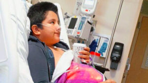 照片中的小男孩只有9岁,现在住在德州的一家医院的ICU。呼吸困难,氧气水平低得危险。