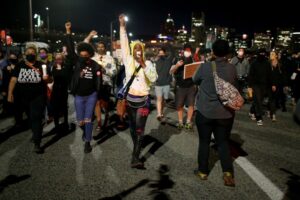 抗议者要求消除白人至上主义,为黑人和有色人种伸张正义。