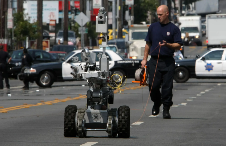 旧金山警察局表示,目前拥有十几个功能正常的机器人,可以携带炸药或在黑暗下监控。