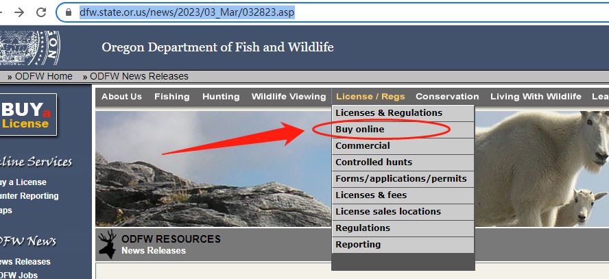 同类报道或信息来源:state.or.us (登录此处,可以购买钓鱼证)