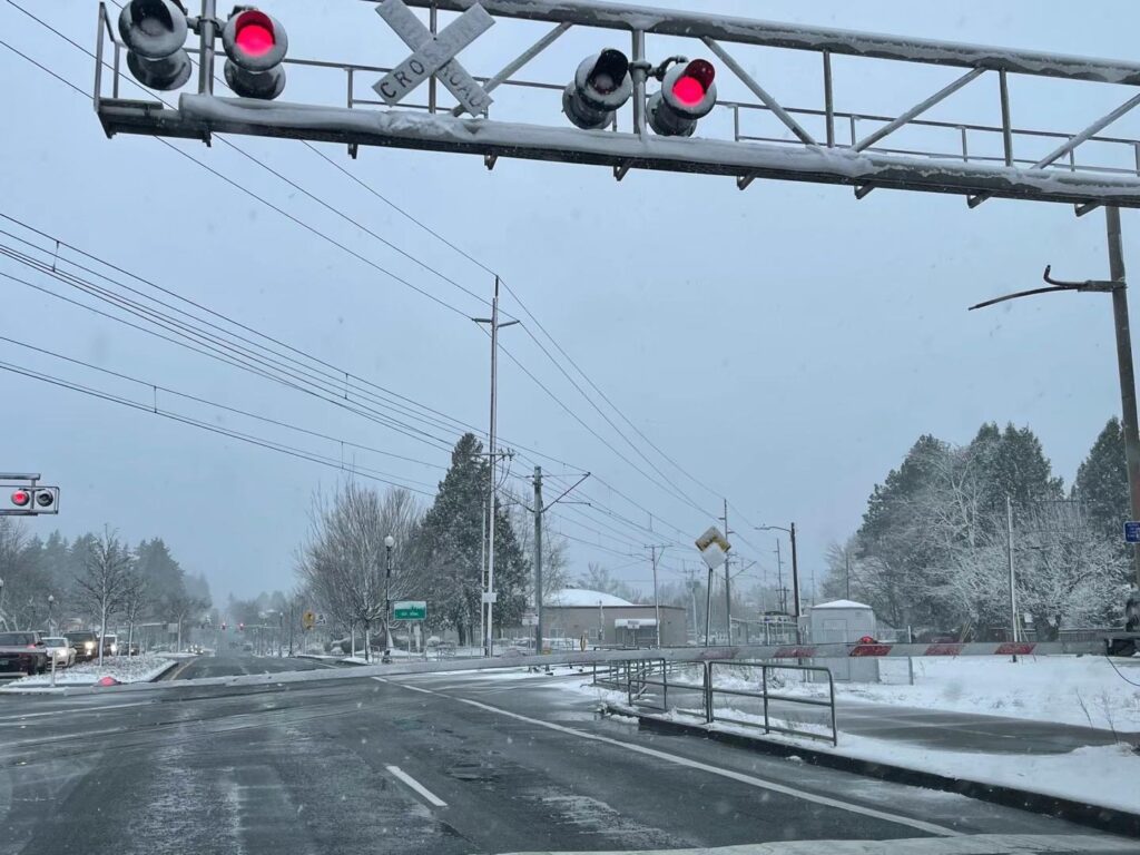 波特兰国家气象局说,大约从早上10点开始,俄勒冈州西北和华盛顿州西南地区白天的大部分时间都在下雪。各地区的积雪量也不相同,从2厘米厚到8厘米不等。
