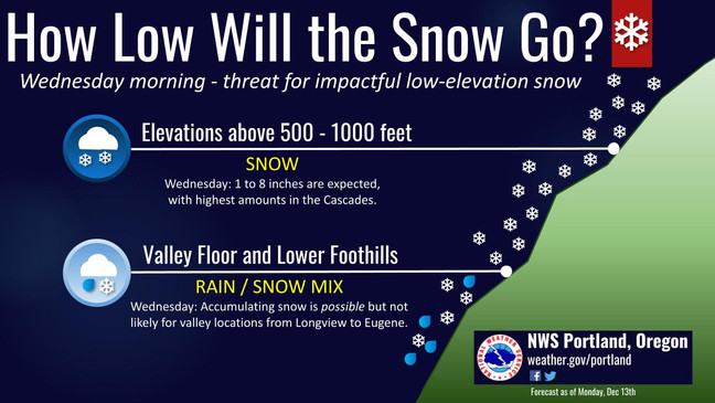 - 大波特兰地区星期三可能下雪! 2021年12月13日