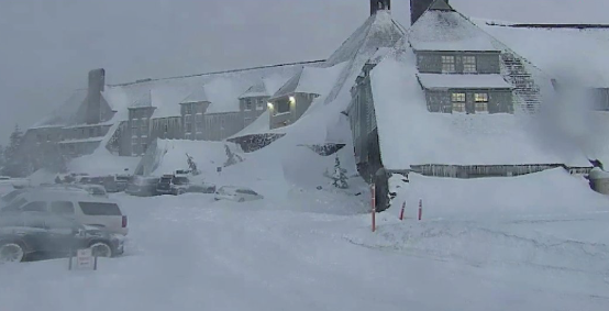 早上,俄勒冈州雪山(Mount Hood,胡德山)已开始降雪!